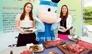 한국낙농육우협회가 9일 서울 양천구 목동 파리공원에서 연 ‘오늘은 육우데이, 국내산 육우 먹는 날!’ 행사에서 도우미들이 각종 육우 요리를 선보이고 있다. 이 협회는 육우와 발음이 비슷한 6월 9일을 육우데이로 지정해 각종 판매촉진 행사를 벌이고 있다. 한국낙농육우협회 제공}