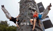 암벽타기 선수와 모델들이 10일 경기 과천시 서울대공원 분수광장에서 이날 끝난 ‘2012 아디다스 락스타 코리아’ 대회를 기념해 인공암벽 클라이밍 묘기를 선보이고 있다. 원대연 기자 yeon72@donga.com}