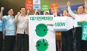 홍석우 지식경제부 장관(플러그 모형 왼쪽)과 기업 임원 등 500여 명이 15일 서울 중구 순화동 호암아트홀에서 전력 위기 극복에 앞장설 것을 다짐하는 ‘국민발전소’ 선포식을 갖고 에너지 절약 구호 “아싸, 가자!”를 외치고 있다. 홍진환 기자 jean@donga.com}