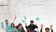 에어서울 승무원들이 28일 일본 도야마 알펜루트에서 일일 가이드로 나서 관광객들에게 5, 6월에도 겨울을 경험할 수 있는 알펜루트의 설경을 홍보했다. 에어서울은 도야마 지역의 여행 피크 시즌을 맞아 ‘승무원과 함께하는 알펜루트 여행’ 행사를 진행하고 있다. 여름 시즌부터는 인천∼도야마 노선을 월, 수, 토요일 주 3회 직항으로 운항할 예정이다.도야마=전영한 기자 scoopjyh@donga.com}
