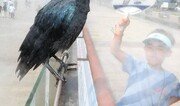 주변 온도를 낮춰주는 쿨링포그(인공안개)가 가동되자 어린 까마귀 한 마리가 온몸을 물기로 가득 적신 채 더위를 식히고 있네요. 이 모습을 바라보던 한 어린이가 까마귀가 더울까 부채질까지 해주네요. ―서울 광화문광장에서 전영한 기자 scoopjyh@donga.com}