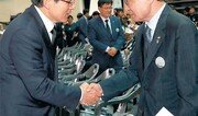 여야의 국회 정상화 합의가 불발돼 일부 상임위원회가 문을 연 가운데 25일 자유한국당 황교안 대표(왼쪽)와 더불어민주당 이해찬 대표가 6·25전쟁 기념식이 열린 서울 장충체육관에서 만나 악수하고 있다. 전영한 기자 scoopjyh@donga.com}