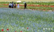 초여름에 들어선 1일 전남 장성군 황룡강에는 수백만송이의 수레국화와 새하얀 안개초 등이 활짝 만개하여 관광객들을 반기고 있다. 장성=박영철 기자 skyblue@donga.com}