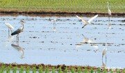 백로와 왜가리가 2일 전남 무안군 일로읍의 한 논에서 미꾸라지 등 먹잇감을 찾고 있다.박영철 기자 skyblue@donga.com}