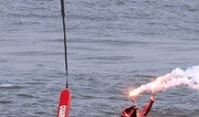 4일 전북 군산시 군산항 해경전용부두에서 ‘스마트 해양 드론 순찰대’ 창설식이 열렸다. 해양경찰 최초로 창설된 드론 순찰대는 해상 사고 현장에서의 수색 지원, 인명 구조 등의 임무를 수행한다. 이날 드론이 바다에서 조난당한 이들에게 구명대를 투하하는 훈련도 진행했다. 군산=박영철 기자 skyblue@donga.com}