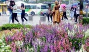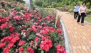 장맛비가 내린 29일 광주 북구 용봉동 북구청 광장에 활짝 핀 맥문동 꽃밭길을 우산을 든 시민들이 지나가고 있다. 박영철 기자 skyblue@donga.com}