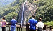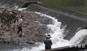 23일 전남 담양군 용면 담양호를 찾은 관광객들이 인공폭포에서 쏟아져 내리는 시원한 물줄기를 보며 더위를 식히고 있다. 박영철 기자 skyblue@donga.com}