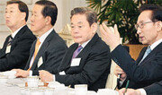 이명박 대통령은 13일 대기업과 중소기업의 동반 성장에 대해 “모든 걸 (강제적) 규정이나 법으로 하는 것은 바람직하지 않다. 기업의 창의력을 떨어뜨리고 의욕을 낮출 수 있다”고 말했다. 이 대통령은 이날 오전 청와대로 대기업 총수 12명을 초청해 조찬간담회를 가진 자리에서 “대기업 이미지도 국가에 기여하는 것에 비해선 우리 사회가 (대기업에) 너무 인색하다. 그러나 (그런 부정적인) 인식을 바꾸려면 기업의 노력도 필요하다”며 대기업 총수들의 자발적 상생 노력을 촉구했다. 현 정부의 국정운영 기조로 제시된 ‘공정한 사회’에 대해 이 대통령은 “사정(司正)과 연결되는 것 아니냐 하는데 나는 그런 생각을 추호도 하지 않는다”며 “(다만) 대기업과 중소기업 관계도 공정한 사회에 걸맞나, 공정한 거래인가 하는 것을 검토해보자는 것”이라고 말했다. 이날 간담회에서 정병철 전국경제인연합회 상근부회장은 중소기업과의 동반 성장을 위한 5대 추진 과제를 밝혔다. 5대 과제는 △대기업과의 협력 대상을 2, 3차 협력업체로 확대 △현금결제 확대 등 공정거래 관행 정착 △자생력 강화를 위한 기술 인력 지원 확대 △우수 중소기업에 대한 해외 진출 및 판로 확보 지원 △대기업 최고경영자(CEO) 주도 아래 전사적인 동반 성장 추진 및 평가시스템 구축 등이다. 한편 이건희 삼성전자 회장은 “앞으로 2, 3차 협력업체를 포함해 동반성장을 위한 제도나 인프라를 만들어가겠다”고 말했다. 정용관 기자 yongari@donga.com}