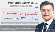 문재인 대통령 국정 수행 지지도 긍·부정 격차가 다시 벌어지는 모습이다. 전 조사에 비해 긍정평가는 더 내려가고 부정평가는 올랐다. 중도층에서 이탈세가 컸다.여론조사 전문기관 리얼미터는 YTN 의뢰로 15~19일 문 대통령의 국정 운영에 대한 여론조사를 실시한 결과를 22일 밝혔다.이번 조사에서 긍정평가는 전주 대비 0.7%포인트 내린 40.6%로 집계됐고, 부정평가는 전주 대비 1.4%포인트 오른 56.1%로 나타났다. ‘모름·무응답’은 0.7%포인트 감소한 3.3%였다.긍정평가와 부정평가 간 차이는 15.5%포인트다. 지난주 조사에서 상승 꼭지가 꺾였던 부정평가는 다시 50%대 후반으로 올라서며 긍정평가와 격차가 벌어지는 모습이다.특히 중도층에서는 긍정평가(42.5%→34.0% 8.5%p↓)가 큰 폭으로 하락한 반면, 부정평가(53.8%→64.4% 10.6%p↑)가 대폭 상승했다.리얼미터는 MB 정부 시절 사찰 논란, 민통선 탈북자 발생과 경계 실패, 김명수 대법원장 사퇴 공방, 신현수 민정수석-박범계 장관 갈등 노출 등이 주로 영향을 미친것으로 분석했다.일간 흐름을 보면 문 대통령 지지율은 15일 42.9%→16일 40.6%→17일 37.4%→18일 38.9%→19일 42.7%로 나타났다.큰폭으로 하락한 17일은 청와대가 신 수석 사의 표명 사실을 공개적으로 확인해준 날이다.연령대별로는 30대(5.9%p↓, 46.2%→40.3%, 부정평가 56.1%), 60대(1.6%p↓, 34.9%→33.3%, 부정평가 63.4%)에서 떨어졌고 70대 이상(1.9%p↑, 32.9%→34.8%, 부정평가 60.3%), 50대(1.5%p↑, 42.3%→43.8%, 부정평가 54.5%)에서는 상승했다.성별로는 여성(2.5%p↓, 43.8%→41.3%, 부정평가 54.7%)에서 내렸고 남성(1.1%p↑, 38.8%→39.9%, 부정평가 57.4%)에서는 올랐다.권역별로는 대전·세종·충청(5.3%p↓, 45.0%→39.7%, 부정평가 59.1%), 서울(2.9%p↓, 41.5%→38.6%, 부정평가 57.4%), 부산·울산·경남(1.0%p↓, 35.9%→34.9%, 부정평가 59.9%)에서 하락한 반면 광주·전라(3.0%p↑, 57.9%→60.9%, 부정평가 35.9%), 대구·경북(1.8%p↑, 25.7%→27.5%, 부정평가 68.7%)에서는 상승했다.정당 지지도는 국민의힘이 지난 조사 대비 0.7%포인트 오른 31.8%, 더불어민주당은 1.4%포인트 내린 31.6%로 집계됐다.국민의당은 1.2%포인트 오른 7.9%, 열린민주당은 0.7%포인트 내린 6%, 정의당은 0.6%포인트 내린 4.7%, 기본소득당은 0.3%포인트 오른 1%,였다. 무당층은 2월 2주 차 대비 변동 없는 14.4%로 조사됐다.이번 조사는 무선전화(80%)와 유선전화(20%) 병행 무작위생성 표집틀을 통한 임의 전화걸기 방법으로 실시했다. 18세 이상 유권자 5만8045명에게 통화를 시도한 결과 최종 3010명 응답을 완료해 5.2%의 응답률을 보였다. 표본오차는 95% 신뢰수준에서 ±1.8%p다. 자세한 조사개요와 결과는 리얼미터 홈페이지 또는 중앙선거여론조사심의위원회 홈페이지를 참조하면 된다.박태근 동아닷컴 기자 ptk@donga.com}