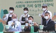 스타벅스커피코리아(스타벅스코리아)는 23일 서울대치과병원점에서 한국장애인고용공단, 서울대치과병원 등과 장애인 고용 증진 및 인식개선 확산을 위한 지속적인 협력을 약속하는 업무협약(MOU)을 체결했다.협약식에는 송호섭 스타벅스코리아 대표이사와 서울대치과병원점 직원(파트너), 조향현 한국장애인고용공단 이사장, 구영 서울대치과병원 병원장 등 주요 관계자가 참석했다.이번 협약은 장애인 고용과 인식개선을 통한 사회적 가치 실현을 목표로 관련 시너지를 지속 발휘하고 스타벅스 서울대치과병원점이 지역사회 속 가치 창출의 매장으로 자리매김하는데 의의가 있다고 스타벅스코리아 측은 전했다.협약에 따라 한국장애인고용공단은 장애인 일자치 관련 컨설팅과 직업 맞춤훈련, 적응 등 고용지원 서비스를 제공하고 스타벅스는 장애인 바리스타 고용, 장애 인식개선 연계 기관과 협력 프로그램 운영 협조 등을 맡는다. 서울대치과병원은 취약계층 장애인을 위한 구강건강증진 사업을 운영하고 스타벅스 서울대치과병원점 매장 운영에 대한 지원과 협력을 이어나가기로 했다. 또한 스타벅스 서울대치과병원점은 매장 수익금 일부를 장애인 치과 수술을 위해 지원한다.이와 함께 스타벅스코리아는 서울대치과병원점 수익금으로 조성된 기금 1억 원을 근로능력을 가진 장애 청년과 희귀 난치성 중증 장애 아동 40여명의 치과 수술비 지원을 위해 서울대치과병원 중앙장애인구강진료센터에 전달했다. 장애인 인식개선을 위한 캠페인 기금 모금 행사도 열었다. 스타벅스코리아는 기부에 참여한 관계자와 소비자에게 감사의 뜻을 담아 장애인 파트너와 발달장애인 작가들이 직접 그린 작품이 담긴 텀블러 300개를 증정했다. 송호섭 스타벅스코리아 대표는 “한 매장에서 시작된 선한 영향력이 이번 협약을 통해 더욱 큰 울림이 되길 기대한다”며 “스타벅스는 앞으로도 사회적 가치 실현을 목표로 지역사회에 긍정적인 영향을 창출하는 공간이 되도록 노력할 것”이라고 말했다.한편 스타벅스코리아는 지난해 12월 국내 최초로 장애인 특화 매장인 서울대치과병원점을 오픈했다. 매장 전체 파트너 12명 중 절반이 장애인 직원으로 구성됐다. 매장은 장애 여부를 가리지 않고 누구나 쉽게 이용할 수 있도록 설계됐다. 근무 중인 장애인 파트너들의 의견을 반영해 근무 편의를 높이면서 장애인 고객을 배려한 설계가 적용됐다.스타벅스코리아 관계자는 “스타벅스에 근무 중인 중증 장애인 파트너는 320명, 경증 장애인 파트너는 70명, 중증 장애를 2배수로 하는 법적 장애인 파트너 수는 710명으로 전체 임직원 대비 3.9% 비중을 차지한다”며 “차별 없는 승진 기회를 부여하고 총 50명의 장애인 파트너가 중간 관리자 직급 이상으로 근무하고 있는 등 업계 최고 수준 장애인 고용률을 유지하면서 상생을 실천하고 있다”고 전했다.동아닷컴 김민범 기자 mbkim@donga.com}