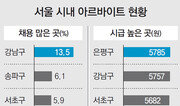 서울시에서 아르바이트 채용이 가장 많은 곳은 강남3구(강남·서초·송파)다. 서울시는 올해 상반기(1∼6월) 아르바이트 채용공고 57만9082건을 분석한 결과 아르바이트 일자리 4개 중 1개가 강남3구(25.5%)에 몰려 있었다고 29일 밝혔다. 평균 시급이 가장 높은 곳은 은평구(5785원)였다. 아르바이트생을 가장 많이 필요로 하는 업종은 음식점으로 상반기에 총 6만2883건의 공고를 낸 것으로 조사됐다. 서울시는 전체 채용 공고에서 ‘협의 후 급여를 결정’하겠다며 시급을 공개하지 않는 공고가 전체의 46%를 차지하는 만큼 법정 최저임금에 못 미치는 시급을 주는 사례도 많다고 보고 근로 환경 실태를 조사할 계획이다. 이서현 기자 baltika7@donga.com}