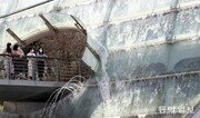 서울 서초구 예술의전당 앞 남부순환로에 있는 아쿠아 아트육교의 워터스크린이 1일부터 가동에 들어가자 시민들이 벽을 타고 흘러내리는 물을 보고 있다. 서초구는 봄을 맞이해 출퇴근 시간과 점심시간에 워터스크린과 양재역 분수대를 운영한다. 김재명 기자 base@donga.com}