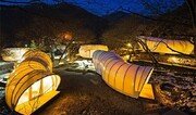 이달 초 경기 양평군 단월면 산자락에 도넛과 지렁이 모양의 설치물이 들어섰다. 산으로 둘러싸인 지형에 이리저리 놓인, 설치미술품 같은 이것들은 독일 유학파인 부부 건축가 심희준(37) 박수정(36) ‘건축공방’ 공동대표가 설계한 텐트다. 고급스러운 캠핑을 뜻하는 ‘글램핑(glamorous camping)’족들을 위한 ‘글램퍼스’다. 글램핑은 편안한 캠핑을 원하는 사람들을 위한 문화다. 자연 속에 들어가 붙박이로 설치된, 전기가 들어오고 물도 나오는 텐트에서 지내는 거다. 캠핑과 펜션 숙박의 중간쯤 된다. ‘건축공방’이 설계한 글램퍼스는 가운데가 뻥 뚫린 도넛 모양과 구불구불한 지렁이 모양 2개 종류다. 도넛형은 면적이 50m²(약 15평), 지렁이형은 40m²(약 12평)로 모두 4인 가족이 묵을 수 있다. 강철로 뼈대를 만든 뒤 경기장에 쓰는 직물인 유럽산 멤브레인을 두 겹으로 씌웠다. 멤브레인은 자외선을 차단해주고 방수 효과가 있다. 불에 잘 타지도 않는다. 안쪽엔 거실 침실 주방 화장실 겸 샤워실이 있고 고기를 구워 먹을 수 있는 테라스가 딸려 있다.이진영 기자 ecolee@donga.com}