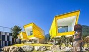 건물이 말을 할 리 없다. 그런데 펜션 단지 ‘모아이’는 저희들끼리 두런두런 얘기를 나누는 듯하다. “머리가 꽤 크시네요”라고 말을 건네면 어디선가 팔이 튀어나와 머리를 긁적거리며 “그러게요” 하고 웃을 것 같다. 경기 가평군 축령산 밑자락에 옹기종기 모여 앉은 펜션 모아이 역시 비일상적인 공간 경험을 할 수 있는 곳이다. 칠레 이스터 섬의 모아이 석상처럼 노란색 머리통이 큰 객실 6개동과 객실 앞 카페 1개동으로 이뤄져 있다. 카페 위는 수영장이다. “건물에 표정을 주고 싶었어요. 건물 7개동의 앞면 모두 인근의 수목원으로 가는 2차로 쪽을 향해 있어요. 길이 막혀 차에 갇혀 있으면 자연히 펜션 쪽으로 눈길이 가면서 ‘저건 뭐지?’ 하고 궁금증을 갖게 되죠.”(구승민 꾸씨노 대표·45) 콘크리트 덩어리임에도 모아이가 표정이 살아있는 생물처럼 느껴지는 이유는 비정형 건축이기 때문이다. 건물 어느 곳도 반듯한 구석이 없다. 1층(약 23m²) 위에 이보다 훨씬 넓고 높은 2층(33m²)이 4.3m 길이의 캔틸레버(외팔보) 모양으로 삐죽 나와 얹혀 있다. 2층의 옆면이나 지붕은 모두 한번쯤은 꺾여 있어 노란색 착색 유리패널과 함께 표정을 더욱 풍부하게 한다. 내부 공간도 외부와 같이 여기저기 꺾여 있다. 1, 2층을 연결하는 노란색 가파른 계단을 제외하면 내부 공간은 단조롭다. 2층 침실의 침대에 누우면 바로 위로 뚫어놓은 둥근 천창으로 낮엔 빛이, 밤엔 별이 쏟아져 들어온다. “일상에선 체험하기 힘든 공간이죠. 인테리어에 들일 예산이 부족해 건물 디자인으로 해결했습니다.”이진영 기자 ecolee@donga.com}