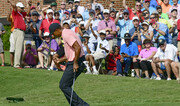 미국프로골프(PGA)투어 페덱스컵 플레이오프 마지막 대회. 페덱스컵 랭킹 1위에게 돌아가는 1000만 달러(약 111억 원) 보너스의 주인공이 결정되는 무대. 화려한 피날레를 꿈꾸는 30명의 출전 선수 가운데 타이거 우즈(미국)가 맨 먼저 화려한 스포트라이트를 받았다. 우즈는 21일 미국 애틀랜타 이스트레이크GC(파70)에서 열린 투어 챔피언십 1라운드에서 5언더파 65타를 쳐 리키 파울러(미국)와 동타를 기록하며 공동 선두로 나섰다. 이로써 우즈는 2주 전 플레이오프 2차전인 BMW챔피언십에 이어 2개 대회 연속 첫 라운드를 선두로 마쳤다. BMW챔피언십 때는 1라운드에 62타를 쳐 단독 선두로 출발해 최종 순위는 공동 6위였다. 마지막 18번홀(파5·590야드)에서 나온 이글이 하이라이트였다. 320야드 티샷을 날린 뒤 핀까지 256야드 거리에서 5번 우드로 투 온에 성공했다. 8.5m 이글 퍼팅을 성공시킨 그는 주먹을 내질렀다. 우즈가 상승세를 유지해 정상에 오른다면 2013년 브리지스톤 인비테이셔널 우승 후 5년 만에 PGA투어 80승 고지에 오른다. 우즈는 “BMW챔피언십 때(62타)보다 코스가 딱딱하고 러프가 길기 때문에 오늘(65타) 더 잘 친 셈이다. 올 한 해를 멋지게 마무리하고 싶다”고 말했다. 이날 우즈는 4차례 그린을 놓쳤지만 모두 파를 지켰으며 18홀을 도는 동안 퍼팅수를 28개까지 줄였다. 세계 랭킹 1위 저스틴 로즈(잉글랜드)는 공동 3위(4언더파)에 이름을 올렸다. 다음 달 제주에서 열리는 PGA투어 더 CJ컵에 출전하는 저스틴 토머스(미국), 로리 매킬로이(북아일랜드)는 3언더파 공동 5위. 김종석 기자 kjs0123@donga.com}