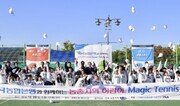 NH농협은행 여자테니스 팀이 고사리 손을 위해 뜻 깊은 재능기부에 나섰다. NH농협은행 여자테니스 팀 김동현 감독과 정영원, 최지희, 박상희, 김세연 등 선수들은 8일 전북 전주시 전북도청 테니스장에서 ‘농촌지역 어린이 초청 매직 테니스 행사’를 열었다. 이 자리에는 평소 테니스를 접하지 못한 전북 고창군 성내, 신림 초등학교와 부안군 백산, 백룡 초등학교 4~6학년 남녀 어린이 60명이 나와 밝은 표정으로 그립, 스트로크 등 기본을 배웠다. 다음주 전북 완주에서 열리는 제99회 전국체육대회 출전을 앞둔 NH농협은행 테니스부 선수들은 바쁜 일정을 쪼개 어린이들과 추억 쌓기에 나섰다. 국제테니스연맹(ITF)이 어린이들이 쉽게 배울 수 있도록 고안한 매직 테니스는 기존 라켓, 볼보다 가볍고 부드러운 용품을 사용한다. 이날 행사에는 이대훈 NH농협은행장과 송하진 전북도지사도 참석했다. 테니스부 감독 출신인 NH농협은행 스포츠단 박용국 단장은 “지역에서 처음 여는 매직 테니스 행사인데 어린이들의 밝은 얼굴을 보니 보람이 크다. 22일 개최 예정인 대전 행사도 기대가 된다. 앞으로 지속적으로 활동하겠다”고 말했다. 김종석 기자 kjs0123@donga.com}