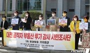 대전공직자부동산투기감시 시민조사단은 19일 “대전시 및 5개 구청 공무원과 이름이 같은 안산첨단국방과학산업단지(안산산단) 인근 토지 소유주 28명을 확인했다”고 발표했다. 대전참여자치시민연대와 정의당 대전시당으로 구성된 시민조사단은 이날 대전시청 북문 앞에서 기자회견을 열어 “28명이 실제 시구 등에 소속된 현직 공무원인지 주소 대조 등을 통해 동일인 여부를 밝히라”고 요구했다. 대전시와 5개 구청 등이 공무원 부동산투기 전수조사를 벌여 1명을 고발했다고 밝힌 지 불과 4일 만이다. 시민조사단은 지난달 22일부터 이달 16일까지 유성구 외삼동에 들어설 안산산단 인근 2259필지 가운데 토지 쪼개기, 불법 전용 의혹 등이 의심되는 217필지에 대한 검증작업을 벌였다. 토지대장 및 등기부등본 내용과 홈페이지에 공개된 시와 구청 공무원, 대전도시공사 임직원, 6·7·8대 시·구의원 등 8500여 명과 한국토지주택공사(LH) 직원의 명단을 대조하는 작업이었다. 분석 결과, 이들 공무원과 이름이 같은 28명이 45필지를, LH 직원 명단과 일치하는 9명이 21필지를 각각 소유한 것으로 조사됐다. 시민조사단 측은 “해당 사업부지 필지 목록과 공무원 명단을 요청했지만, 대전시가 이를 거부했다”며 “전체 필지 소유주 주소와 현직 공무원 주소를 대조하는 방식의 전수 재조사를 실시하라”고 주문했다. 시민조사단은 시와 5개 구청 등이 소속 공무원 9000여 명에 대한 부동산투기 전수 조사를 벌여 1명을 경찰에 고발했다고 15일 밝힌 데 대해 “맹탕 조사”라고 비판했다. 남가현 정의당 대전시당 위원장은 “시가 공직자 부동산 투기를 뿌리 뽑을 의지가 없다는 사실을 확인했다”고 말했다. 지명훈 mhjee@donga.com·이기진 기자}