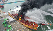 28일 울산 염포부두를 화염에 휩싸이게 했던 선박 화재가 18시간 반 만에 진화됐다. 이 사고로 중상 1명을 포함해 18명이 다쳤다. 또 울산 태화강 하류를 가로질러 남구와 동구를 연결하는 울산대교 통행도 한동안 통제됐다. 울산시와 해경, 소방 당국 등은 환경오염 방지와 함께 사고 원인 조사를 벌이고 있다. 울산시와 울산해경, 울산동부소방서에 따르면 28일 오전 10시 51분경 동구 방어동 염포부두에서 발생했던 2만5000t급 석유제품 운반선 스톨트 그로인란드호 화재는 29일 오전 5시 25분경 완전히 진화됐다. 케이맨제도 선적인 이 선박에서 대형 폭발음과 함께 불이 나 화염이 하늘 높이 솟구쳐 부두에서 200m가량 떨어진 울산대교의 통행도 29일 오후 2시 반까지 제한됐다. 화재 당시 그로인란드호에 있던 선원 25명과 바로 옆에 정박해 있다 불이 옮겨붙었던 싱가포르 선적 6583t급 석유제품운반선 바우달리안호 선원 21명 등은 긴급히 대피했다. 이 과정에서 두 선박의 외국인 선원 46명 가운데 3명이 다쳤고 인도인 선원 한 명은 중화상을 입었다. 또 한국인 하역사 직원 8명도 다쳤다. 구조와 진화에 나섰던 소방관, 해경대원 등 7명도 치료를 받았다. 송철호 울산시장은 29일 오전 연기를 흡입해 울산 중앙병원에 입원한 울산해경 박철수 경장(33)을 위로했다. 그로인란드호에는 석유류와 화학물질 등 2만5000t가량이 적재돼 있었던 것으로 알려졌다. 관계 당국은 처음 폭발과 함께 불이 난 곳은 탱크 34개 중 석유류 2700t이 실렸던 9번 탱크로 파악했다. 24일 일본 고베항을 출발해 25일 오후 11시 반 울산 염포부두에 입항한 그로인란드호는 바우달리안호로 석유제품의 이송을 준비하던 중이었다. 해경은 “폭발 직전 두 선박에서 어떤 작업이 있었는지를 알아보고 있다. 그로인란드호 선박 내 열기가 식고 위험물질 이송 등 안전이 확보된 뒤 본격적인 조사가 시작될 것”이라고 말했다. 이에 따라 화염의 영향을 덜 받은 바우달리안호에 대한 현장 조사가 먼저 진행될 것으로 보인다. 해경은 사고 선박 주위에 오일펜스를 설치하고 방재정도 배치했다. 울산동부소방서도 추가 사고 위험이 없는지 확인에 나섰다.울산=정재락 기자 raks@donga.com}