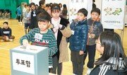 ‘소중한 내 한 표, 올바르게 쓰겠어요.’ 12일 오전 서울 중구 남산초등학교 강당에 마련된 전교학생회장 선거 투표소에서 이 학교 4∼6학년생들이 투표하고 있다.전영한 기자 scoopjyh@donga.com}