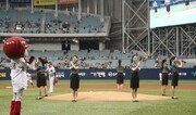에어서울 승무원들이 28일 서울 구로구 고척 스카이돔에서 열린 키움히어로즈와 기아타이거즈의 경기에서 시구 퍼포먼스를 선보였다.이날 키움히어로즈와 기아타이거즈 경기에서는 ‘에어서울 데이’를 맞아, 에어서울 승무원 8명이 시구 퍼포먼스를 펼쳤다. 승무원들은 시구에 앞서 그라운드 위에 올라, 기내 안내 방송을 하듯이 경기장의 비상구 위치와 파울볼 주의 등에 대해 안내를 하는 특별 퍼포먼스를 선보인 후 직접 시구와 시타를 진행했다.전영한 기자 scoopjyh@donga.com /사진제공=에어서울}