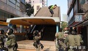 18일 오후 3시경(현지 시간) 배낭을 멘 젊은 홍콩 시위대 2명이 이른바 ‘최후의 보루’인 홍콩이공대에서 육교 지붕을 따라 탈출했다. 이들은 육교 끝에서 지키고 서 있던 경찰과 맞닥뜨렸다. 무장경찰들이 ‘펑!’ 소리와 함께 최루탄 총으로 이들에게 조준사격을 하자 인근 시민들까지 깜짝 놀랐다. 무기가 없는 비무장 상태였다. 최루탄은 빗나갔지만 매캐한 연기가 거리를 가득 메웠다. 시위대가 두 손을 들었지만 경찰이 다시 최루탄 총을 정조준하는 모습이 기자에게 목격됐다. 중국 당국은 홍콩과 인접한 광둥성 광저우에서 대규모 테러 진압 훈련을 실시하며 시위대를 압박했다. 학교 내에 남은 일부 강경파 시위대는 유서를 쓰고 ‘엔드 게임’ ‘결사 항전’을 다짐해 충돌 기운이 고조됐다. 홍콩 고등법원은 이날 마스크를 쓰고 시위하는 것을 금지한 ‘복면금지법’이 위헌이라고 판결했다. 이 법은 캐리 람 홍콩 행정장관이 지난달 ‘긴급정황규례조례(긴급법)’를 발동해 시행했다. 중국의 속내를 대변해온 후시진(胡錫進) 환추(環球)시보 편집장은 자신의 트위터에 “경찰은 시위대에 실탄을 발사해야 한다”고 주장해 강도 높은 유혈 진압 우려가 높아졌다. 윤완준 특파원 zeitung@donga.com}