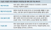 도널드 트럼프 미국 대통령이 지난달 30일(현지 시간) 미 연방의회 하원 본회의장에서 가진 취임 후 첫 국정연설에서 북한 관련 메시지의 대부분을 할애해 북한 정권의 잔학성을 강조했다. 트럼프 대통령은 이날 1시간 20분여에 걸친 국정연설에서 외교·안보 정책 중 북한 문제에 가장 많은 시간인 약 7분을 할당했다. 트럼프 대통령은 “북한의 잔혹한 독재정권보다 자국민을 철저히 야만적으로 억압한 정권은 없었다”며 포문을 열었다. 그는 “북한의 무모한 핵미사일 추구가 우리 국토를 곧 위협할 수 있을 것”이라며 “그런 일이 일어나지 않도록 최대의 압박작전을 펼치고 있다”고 강조했다. 이어 트럼프 대통령은 “북한이 미국과 동맹국에 가하는 핵위협의 본질을 이해하려면 북한 정권의 타락상을 살펴보는 것으로 충분하다”고 운을 뗀 뒤 6분가량을 할애해 북한의 인권 실태를 거론했다. 그는 북한에 17개월간 억류됐다가 지난해 숨진 미국 대학생 오토 웜비어의 사례와 북한에서 기차에 치여 두 다리와 팔을 잃은 장애인 탈북자 지성호 씨의 사연을 소개했다. 북한 관련 연설 32문장 중 지 씨에게 18문장이, 웜비어에게 9문장이 할애됐다. 트럼프 대통령은 그동안 중점적으로 추진해온 대북 제재는 물론이고 북한에 대해 미국이 기대하는 주문사항은 일절 언급하지 않았다. 미국 시사지 애틀랜틱은 “트럼프는 가장 주목받는 국정연설에서 외교를 전혀 언급하지 않았으며, 타락한 김정은이 결코 핵을 포기하지 않을 것이란 점을 부각하고 있다”고 분석했다. 미국의 진보적 온라인 언론 ‘복스’는 “이 부분은 트럼프 대통령의 국정연설에서 가장 무서운 대목”이라고 분석했다. 북한을 인류의 적이자 그리스도의 적인 국가로 묘사하고, 국민을 학대하는 정부가 핵무기로 미국을 위협하고 있다고 호소한 수법은 2003년 이라크전쟁을 앞둔 조지 W 부시 당시 대통령이 2002년 국정연설에서 했던 방식과 똑같다는 것이다.뉴욕=박용 특파원 parky@donga.com / 주성하 기자}