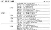 26일 부동산정보업체 ‘부동산114’에 따르면 4월 마지막 주에는 전국 19개 단지 1만2889채가 분양한다. 일반 분양은 1만1005채다. 우미건설과 신동아건설은 28일 경기 양주시 ‘양주옥정린파밀리에’ 1순위 청약을 시작한다. 30일에는 현대엔지니어링이 경기 용인시에서 짓는 ‘힐스테이트용인고진역’ 2703채가 분양을 시작한다. 본보기집은 29일 경기 안산시 ‘한화포레나안산고잔’과 경기 화성시 ‘동탄2신도시동탄역디에트르’가, 30일 서울 동대문구 ‘힐스테이트장안센트럴’, 경기 양평군 ‘더샵양평리버포레’가 각각 문을 연다. 김호경 기자 kimhk@donga.com}