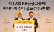 KB금융그룹배 여자아마추어골프선수권대회는 필드 스타의 산실로 불린다. 2007년 유소연이 우승했고 양수진(2008년), 김효주(2009년), 백규정(2010년), 고진영(2012년) 등이 트로피를 안았다. 올해에는 15세 골프 유망주가 고교 언니들을 제치고 정상에 섰다. 중학 최강으로 불리는 이예원(문정중 3)이 그 주인공이다. 이예원은 13일 강원 원주 센추리21CC(파72)에서 열린 제12회 KB금융그룹배 여자아마추어선수권대회 3라운드에서 보기 없이 버디만 7개를 낚아 최종합계 11언더파 205타로 국가대표 상비군 현세린(제주방송통신고 2)과 동타를 이룬 뒤 연장전에서 이겼다. 최종라운드를 공동 4위로 출발한 이예원은 전반 9개 홀에서만 5타를 줄이며 선두 현세린을 맹추격한 뒤 17, 18번홀 연속 버디로 승부를 연장으로 몰고갔다. 18번 홀에서 치러진 연장 첫 번째 홀에서 이예원은 현세린이 보기를 범한 틈을 타 파로 마무리해 승리를 결정지었다. 이예원은 “전혀 예상하지 못했던 우승이라 더욱 감격스럽다. 그동안 고생한 부모님께 감사드린다”며 “앞으로 더욱 훌륭한 선수가 될 수 있도록 노력하겠다”고 말했다. 우승을 차지한 이예원은 부상으로 10월 18일부터 21일까지 경기 여주의 블랙스톤 이천 골프클럽에서 열리는 한국여자프로골프(KLPGA)투어 메이저 대회 KB금융 스타챔피언십 출전권과 장학금 200만 원을 받았다. 2위 현세린과 3위 윤하연(인천여방통고 3)도 각각 150만 원, 100만 원의 장학금과 함께 KB금융 스타챔피언십 출전권을 획득했다. KB금융그룹은 이날 한국 아마추어 골프의 발전을 위해 대한골프협회에 3억 원의 주니어 육성 기금을 전달했다. KB금융그룹관계자는 “아마추어 선수들이 꿈과 희망을 품고 세계적인 선수로 발돋움할 수 있도록 앞으로도 지원을 아끼지 않겠다”고 말했다. 김종석기자 kjs0123@donga.com}