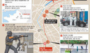 에펠탑에서 5∼6km 떨어진 프랑스 파리 11구에 있는 주간지 ‘샤를리 에브도’ 본사 부근에 검은색 시트로엥 C3 해치백 차량이 도착한 시각은 7일 오전 11시 30분경(현지 시간). 1명은 차에 남고 2명은 차에서 내렸다. 2명의 손에는 러시아제 칼라시니코프 소총이 들려 있었다. 이들은 1층에서 조우한 건물 관리 직원에게 잡지사 위치를 물어본 뒤 “2층”이라는 답이 끝나자마자 갑자기 총을 쏴 그를 죽였다. 테러범들은 2층으로 올라갔다. 마침 만평작가인 코린 레 씨가 어린 딸을 보육원에서 데리고 돌아오다 범인과 마주쳤다. 레 씨는 “마스크를 쓰고 무장한 두 명이 잔인하게 협박해 포기하는 심정으로 현관문 비밀번호를 눌렀다”고 프랑스 신문 뤼마니테에 말했다. 테러범들은 이내 수요일마다 편집회의가 열리고 있는 뉴스룸으로 쳐들어갔다. 편집장 겸 만평가인 스테판 샤르보니에 씨는 알카에다의 살해 협박을 수차례 받았던 인물로 당시 점심식사를 겸해 주간 회의를 진행하고 있었다. 테러범들은 사람들을 남성과 여성으로 나눠 세우고 주머니에서 처형 대상 명단을 꺼내 한 명씩 호명한 뒤 바로 쏴 죽였다. 유창하면서도 악센트가 없는 프랑스어로 “신은 위대하다”는 구호를 외치기도 했다. 생존자들을 치료한 의사 제랄드 키에르제크 씨는 CNN과의 인터뷰에서 “테러범들은 총을 난사한 게 아니라 희생자들을 처형한 것이나 마찬가지”라고 밝혔다. 뉴스룸에서만 10명이 죽었다. 샤르보니에 씨의 경호를 맡고 있던 경찰관 1명도 포함됐다. 한 목격자는 AP통신에 “그들이 너무 체계적이라 처음에는 프랑스 반테러 정예요원인 줄 알았다”고 말했다. 미 중앙정보국(CIA) 훈련을 받은 바 있는 토니 섀퍼 전 미 육군 중령은 “테러범들은 굉장히 전문적이고 조직적으로 보인다. 군사훈련 없이는 이런 잘 짜인 각본 같은 작전을 수행할 수 없다”고 말했다. 샤를리 에브도는 그동안에도 무슬림 비판 만평을 자주 실어 심각한 테러 위협을 받아 현지 경찰이 주위를 감시했다. 하지만 “프랑스 경찰도 건물 내부에까지 무장 괴한들이 들어갈 줄은 예상하지 못했다”고 현지 언론은 전했다. 단 5분 만에 임무를 마친 테러범들은 대기 중인 차에 올라타고 도주했다. 이 과정에서 경찰과 3차례 총격전을 벌였다. 총에 맞아 살려 달라고 애원하는 경찰관을 향해 총구를 머리 부근에 대고 방아쇠를 당기는 잔혹함을 보였다. 희생자가 총 12명으로 늘어나는 순간이었다. 이 장면은 인근 폐쇄회로(CC)TV에 포착됐다. 도주하던 테러범들은 포르트드팡탱 지하철역 부근에서 차를 빼앗아 갈아타고 달아났다. 놀란 시민들에게는 “예멘의 알카에다가 저지른 일이라고 언론에 알려라”고 말하는 등 여유를 부리기도 했다. 경찰은 테러범들이 도주 차량에 흘린 신분증으로 용의자를 특정하고 프랑스 동북부 도시 랭스 일대에서 대대적인 검거 작전을 펼쳤지만 달아난 이들의 행방은 아직 오리무중이다. 이유종 기자 pen@donga.com}