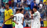 18일 오후 9시(한국시간) 러시아 니즈니노브고르드 스타디움에서 열린 2018 러시아월드컵 F조 1차전 대한민국-스웨덴전에서 한국이 1-0으로 경기가 끝난 뒤 손흥민 페널티킥 파울을 한 김민우를 위로하고 있다.니즈니노브고르드=최혁중 기자 sajinman@donga.com}