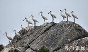 지구에 남아 있는 저어새는 불과 3000여 마리. 인천 옹진군 영흥도 해안가에 모인 저어새 10마리가 참으로 소중하게 느껴집니다. 영흥도와 강화갯벌 등 인천 경기 해안가가 저어새의 쉼터 노릇을 한다고 하니 더 위안이 되는군요. 내년엔 이 바위에 더 많은 저어새가 앉아있기를 바랍니다. 옹진=박영대 기자 sannae@donga.com}