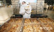12일 인천공항 화물터미널에서 농림축산검역본부 직원이 스페인에서 온 병아리의 상태를 살피고 있다. 스페인산 병아리는 조류인플루엔자 확산의 여파로 부족해진 양계를 수급하기 위해 수입됐다. 인천=박영대 기자 sannae@donga.com}