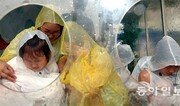 27일 서울 중구 서울광장에서 열린 ‘2017 빗물축제 및 물순환 시민문화제’에 참가한 어린이들이 비옷을 입고 인공비를 맞는 등 풍수해 체험을 하고 있다. 이 행사는 빗물의 소중함을 알리기 위해 서울시가 마련했다.박영대 기자 sannae@donga.com}