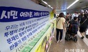 장애등급제와 부양의무제 폐지 등을 촉구하며 서울 광화문 지하보도에서 5년 동안 점거농성을 한 전국장애인차별철폐연대가 5일 농성장을 떠나고 있다. 이들은 지난달 25일 농성장을 찾은 박능후 보건복지부 장관이 “장애등급제 폐지 등을 논의하는 민관 협의체를 구성하겠다”고 약속한 뒤 농성을 끝내기로 결정했다. 박영대 기자 sannae@donga.com}