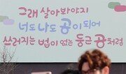 시민들이 4일 서울 광화문 교보빌딩의 광화문 글판을 배경으로 사진을 찍고 있다. 광화문 글판은 계절이 바뀔 때마다 한 번씩 교체된다. 오늘 게시된 ‘봄편’ 글판은 정현종 시인의 작품 ‘떨어져도 튀는 공처럼’에서 나온 시구로 “역경 속에서도 다시 튀어오르는 공처럼 당당하게 살자”는 메시지를 담았다. 전영한 기자 scoopjyh@donga.com}