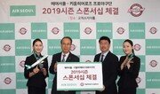 7일 서울 고척스카이돔에서 열린 에어서울, 키움히어로즈와 스폰서십 체결식에서 에어서울 조규영 대표, 키움히어로즈 박준상 대표가 2019년 시즌 선전을 기원하며 함께 손을 잡았다.이번 스폰서십 체결을 통해 에어서울은 홈 경기 관람객들을 위한 이벤트 경품으로 항공권 등을 지원하며, 키움히어로즈는 2019 올 시즌 동안 고척 스카이돔 본부석 하단에 설치된 LED를 통해 에어서울 브랜드를 노출하는 등 에어서울 홍보를 적극 지원하게 된다.또한, 시즌 중 진행되는 ‘스폰서 데이’에는 에어서울 승무원이 고척 스카이돔 경기장을 찾아 직접 시구에 나설 예정이다. 전영한 기자 scoopjyh@donga.com}