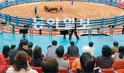 5일 오전 경북 청도군 화양읍 삼신리 상설소싸움경기장. 입구에 들어서자 “와∼!” 하는 함성이 들렸다. 좌석에 앉아 있던 수백 명의 관중은 일제히 일어서서 모래판 한가운데 맞붙은 싸움소들을 응시하고 있었다. ‘황금이’와 ‘효동이’가 한 치의 양보 없이 첫 경기를 펼치고 있는 가운데 온통 ‘누가 이기느냐’란 결과만 나오길 기대하는 눈빛이었다. 1라운드 5분씩 진행되는 경기. 두 싸움소는 3라운드까지 치열한 접전을 벌였다. 뿔 치기, 뿔 걸이, 밀치기 기술이 나올 때마다 흥분한 관중의 박수가 터졌다. 이날 처음 구경 왔다는 김모 씨(52·자영업·경남 창원시 의창구)는 “1만 원을 걸었는데 경기에서 눈을 뗄 수가 없다”며 “소뿔이 맞부딪치는 걸 보니까 손에 땀이 절로 난다”고 했다. 장내 아나운서는 경기 흥을 돋웠다. “젊은 패기(황금이)와 관록(효동이)의 싸움”이라고 소개한 아나운서는 명장면이 나올 때마다 싸움소 이름을 외치며 관중의 응원을 유도했다. 모든 면에서 황금이가 앞선 상태였다. 나이(세 살)가 효동이(여덟 살)보다 다섯 살 어리고 몸무게(1016kg)도 86kg 더 나갔다. 황금이는 주특기인 밀치기로 경기 초반을 주도했다. 그러나 전국 우승 경험이 있는 효동이는 시계 방향으로 황금이 밀치기 공격을 수차례 흘려버리며 잘 응수했다. 경기는 예상을 뒤엎고 황금이가 꽁무니를 빼면서 효동이의 승리로 끝났다. 전광판에는 4라운드 17분 1초 ‘효동이 승’이란 경기 결과와 배당률이 나왔다. 승리한 소 또는 무승부를 맞히는 단승 1.2배, 승리 라운드까지 적중하는 시단승식 15.1배 숫자가 나오자 관중석에서는 함성과 탄식이 뒤섞였다.○ 사행성 조장 우려도 국내에서 처음으로 건립된 청도소싸움경기장이 개장 2개월을 맞았다. 이곳은 개장 초기부터 관람객이 경마장 마권(馬券)처럼 우권(牛券)을 구입해 돈을 걸도록 해 관심을 모았다. 7일 청도공영사업공사에 따르면 6일까지 154경기가 열린 가운데 총 5만4550명이 7억7000여만 원어치 우권을 구입해 베팅했다. 개장 첫날(9월 3일)에는 무려 5만여 명이 입장했다. 요즘은 주말마다 열리는 10경기에 5000∼6000명이 관람하고 있다. 경기는 전국 대회 16강 이상 성적을 거둔 싸움소 200여 마리가 출전해 화려한 기술을 선보이면서 박진감이 넘친다는 평가를 받고 있다. 공사 관계자는 “대구뿐만 아니라 부산 울산 창원에서 온 손님이 늘고 있다”고 했다. 사행성을 조장하는 요소는 경기장 곳곳에 있었다. 게시판에는 지금까지 최고 배당률 3105배를 소개하는 자료가 내걸려 있다. 전광판은 발매 마감시간을 시시각각 알리면서 우권 구입을 부추겼다. 경마처럼 우승소를 예상한 정보지(3개 회사)도 권당 4000원에 판매 중인데 찾는 손님이 제법 보였다. 부산에서 왔다는 박모 씨(56)는 “경마 경륜보다 배당률이 높은 편”이라고 했다.○ 레저문화로 정착시켜야 청도공영사업공사는 사행성 우려를 일축했다. 전체 관람객의 30% 정도만 우권을 구입하고 베팅금액도 개인당 1만5000∼2만 원으로 많지 않다는 것. 대부분의 가족 단위 관람객은 소싸움 경기를 민속놀이처럼 구경하기 위해 찾고 있다는 설명이다. 공사 측은 경기장 주변에 공원을 조성하고 운문사와 와인터널, 청도팔경, 용암온천 같은 인근 관광코스와 연계하는 프로그램을 개발 중이다. 경기장 주변에서 탈 수 있는 무료 자전거도 마련한다. 박종규 청도공영사업공사 사장(56)은 “사행산업 이미지를 벗기 위해 여러 방안을 고민하고 있다”며 “소싸움 경기를 가족과 즐길 수 있는 문화로 인식하도록 노력할 것”이라고 말했다.청도=장영훈 기자 jang@donga.com}
