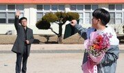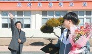 경북 경주시 모아초등학교 모서분교의 마지막 졸업생인 정성운 학생이 9일 졸업식을 마친 뒤 운동장을 나서고 있다. 학생 뒤로 담임인 성종현 선생님이 손을 흔들고 있다. 1949년 개교한 모서분교는 최근 2년 동안 학생을 받지 못해 올해 폐교된다. 경주=김재명 기자 base@donga.com}