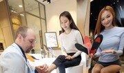 28일 서울 서초구 신세계백화점 강남점 슈마이스터 라운지에서 독일의 발 전문가가 모델들의 발 형태를 측정하고 있다. 이곳에서는 고객의 발 모양에 맞는 맞춤형 깔창을 제작해 판다. 가격은 25만∼30만 원. 변영욱 기자 cut@donga.com}