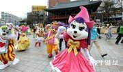 13일 서울 종로구 종로 보신각 앞 광장에서 롯데월드 공연단원들이 ‘마스크 페스티벌’을 알리는 공연을 선보이고 있다. 각종 마스크를 쓴 배우들이 퍼레이드와 뮤지컬 공연을 하는 마스크 페스티벌은 19일부터 6월 19일까지 롯데월드에서 열린다. 변영욱 기자 cut@donga.com}