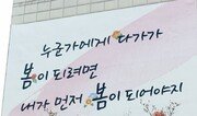 KDB산업은행은 서울 여의도 본점에 11일 창사 이래 처음으로 글판을 걸었다고 13일 밝혔다. KDB산업은행 직원들의 공모와 투표로 선정된 이 글귀는 이해인 수녀의 ‘봄일기’의 구절로 4월 말까지 여의도 본점에서 선보인다. 변영욱 기자 cut@donga.com}