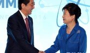 한중 정상회담에 앞서 박근혜 대통령은 워싱턴 컨벤션센터에서 한미일 정상회담에 이어 아베 신조 일본 총리와도 20분간 따로 만났다. 두 정상은 일본군 위안부 관련 합의 이행의 중요성을 재확인했다. 워싱턴=변영욱 기자 cut@donga.com}