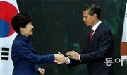 박근혜 대통령이 4일(현지 시간) 멕시코시티 대통령궁 영빈광장에서 엔리케 페냐 니에토 멕시코 대통령(오른쪽)과 공동 기자회견에 앞서 악수하고 있다. 멕시코시티=변영욱 기자 cut@donga.com}