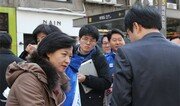 더불어민주당 추미애 대표(왼쪽)가 2일 서울 여의도역 앞에서 박근혜 대통령을 수사해야 한다는 내용을 담은 ‘박근혜-최순실 게이트 진상 규명’ 홍보 전단을 시민들에게 나눠주고 있다. 홍진환 기자 jean@donga.com}