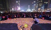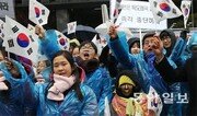 지난해 12월 31일 서울 광화문광장에서 열린 10차 촛불집회에 세월호 참사 희생자를 추모하는 종이배가 등장했다. 주최 측은 이날 100만 명(경찰 추산 6만5000명)이 참여해 열 번의 촛불집회에 참석한 사람이 1000만 명을 넘었다고 밝혔다(위쪽 사진). 한편 같은 날 오후 서울 덕수궁 대한문 앞에서는 박사모 등이 주최한 맞불집회가 열렸다(아래쪽 사진). 장승윤 tomato99@donga.com·홍진환 기자 }
