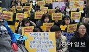 일본 시마네 현이 ‘다케시마의 날’ 행사를 연 22일 서울 종로구 옛 주한 일본대사관 앞 위안부 소녀상 옆에서 나라(독도)살리기 국민운동본부 회원들이 “일본은 독도 영유권 주장의 허구성을 사죄하라”고 외치며 태극기를 흔들고 있다. 홍진환 기자 jean@donga.com}