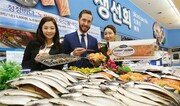 롯데마트는 3월 1일까지 고등어와 연어 등 노르웨이 수산물을 최대 25% 할인 판매하는 기획전을 진행한다. 22일 서울 중구 롯데마트 서울역점에서 군바르 비 노르웨이 수산물위원회 한국지부 이사(가운데)가 상품을 선보이고 있다. 홍진환 기자 jean@donga.com}