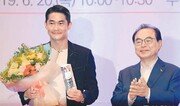 20일 부산 연제구 부신시청 로비에서 모델 겸 배우 배정남 씨가 ‘시민이 뽑은 부산시 홍보대사’로 선정돼 오거돈 부산시장으로부터 위촉패를 받고 있다. 배 씨는 시민들을 위한 공익 활동과 시 주요 시책 홍보, 재능기부 등의 활동을 하게 된다. 박경모 기자 momo@donga.com}