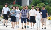 3일 허성무 창원시장과 시청 직원들이 여름철 혹서기를 맞아 반바지를 입고 일할 수 있는 ‘프리패션데이’ 시행에 맞춰 반바지를 입고 출근하고 있다. 박경모 기자 momo@donga.com}