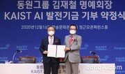 김재철 동원그룹 명예회장이 국내 인공지능(AI) 분야 인재 육성과 기술 발전을 위해 써달라며 카이스트(KAIST)에 사재 500억 원을 기부했다.동원그룹은 김재철 명예회장이 16일 카이스트 대전 본원 학술문화관 정근모 컨퍼런스홀에서 열린 기부 약정식을 통해 향후 10년간 연차별 계획에 따라 사재 500억 원을 기부했다고 밝혔다. 이날 약정식에는 김남정 동원그룹 부회장 등 김 명예회장 가족과 신성철 카이스트 총장, 김남구 한국금융지주 회장 등 주요 관계자들이 참석했다.이번 기부는 4차 산업혁명 시대를 맞아 대한민국이 AI 분야 주도권을 잡아 선진국으로 발돋움하기 위해서는 관련 분야 인재 양상이 시급하다는 김 명예회장 소신에 따라 이뤄진 것으로 알려졌다.김 명예회장은 약정식에서 “AI 물결이 대항해시대와 1~3차 산업혁명 이상으로 우리 삶을 바꾸는 큰 변화를 이끌 것”이라며 “이번 기부가 대한민국이 AI 선진국으로 나아가는 출정식 역할을 할 수 있기를 기대한다”고 말했다. 이어 “우리 국민이 국력을 모아 경쟁에 나서면 AI 선진국으로 발돋움 할 수 있을 것”이라며 과학영재들과 우수한 교수진이 집결해있는 카이스트가 선두주자로 나서 국내 AI 개발 속도를 촉진하는 기함 역할을 할 것“이라고 덧붙였다.신성철 카이스트 총장은 “카이스트 역할과 임무에 대한 사명감을 마음에 새기고 이번 기부를 토대로 카이스트가 AI 인재 양성과 연구의 허브가 될 수 있도록 최선을 다하겠다”고 전했다.카이스트는 김재철 명예회장의 뜻을 기리기 위해 AI대학원 이름을 ‘김재철 AI대학원’으로 정했다. 오는 2030년까지 총 40명 규모 세계 최고 수준 교수진을 꾸려 4차 산업혁명 시대를 선도하는 수준의 AI대학원을 운영한다는 계획이다. 특히 융·복합이 중요한 4차 산업혁명 시대에 적합한 인재 육성을 위해 AI 분야 기술은 물론 다양한 인문학 강의를 통해 지식과 인성을 두루 갖출 수 있는 전인교육을 실시한다는 방침이다.우수 인재와 교수진 확보를 위해 현재 대전 본원에 있는 AI대학원을 내년 3월부터 단계적으로 서울 홍릉 캠퍼스로 이전한다. 2023년부터는 AI 관련 기업들과 공동연구 및 산학협력 프로젝트 등을 통한 시너지 극대화를 위해 ‘양재 연구·개발(R&D) 혁신지구’에 교육 및 연구시설 확충을 추진한다는 계획이다.카이스트 AI대학원은 국내 대학 중 가장 먼저 과학기술정보통신부의 ‘2019 AI대학원 지원사업’에 선정(작년 3월)된 이후 그해 8월 문을 열었다. 현재 카이스트 AI대학원은 구글과 아이비엠왓슨, 마이크로소프트 등 세계적인 기업의 AI 연구소 출신 전임교수 13명과 겸임교수 8명 등으로 구성된 교수진으로 석·박사 과정을 운영하고 있다.김 명예회장은 지난해 퇴임 이후 AI 인재 양성과 기술 확보에 남다른 관심을 기울여왔다. 동원그룹 계열사 동원산업은 작년 한양대에 30억 원을 기부해 국내 첫 AI솔루션센터인 ‘한양 AI솔루션센터’를 설립했다. 동원그룹은 지난해 그룹 차원에서 태스크포스팀(TF)을 구성해 전 계열사에 로봇 프로세스 자동화(RPA) 프로젝트를 도입한 데 이어 지난달 대표이사 직속 AI 전담 조직을 신설하기도 했다. 올해 8월에는 KT가 주도하고 있는 AI 기술 산학연 협의체 AI원팀(AI One Team)에 합류했다.동아닷컴 김민범 기자 mbkim@donga.com}
